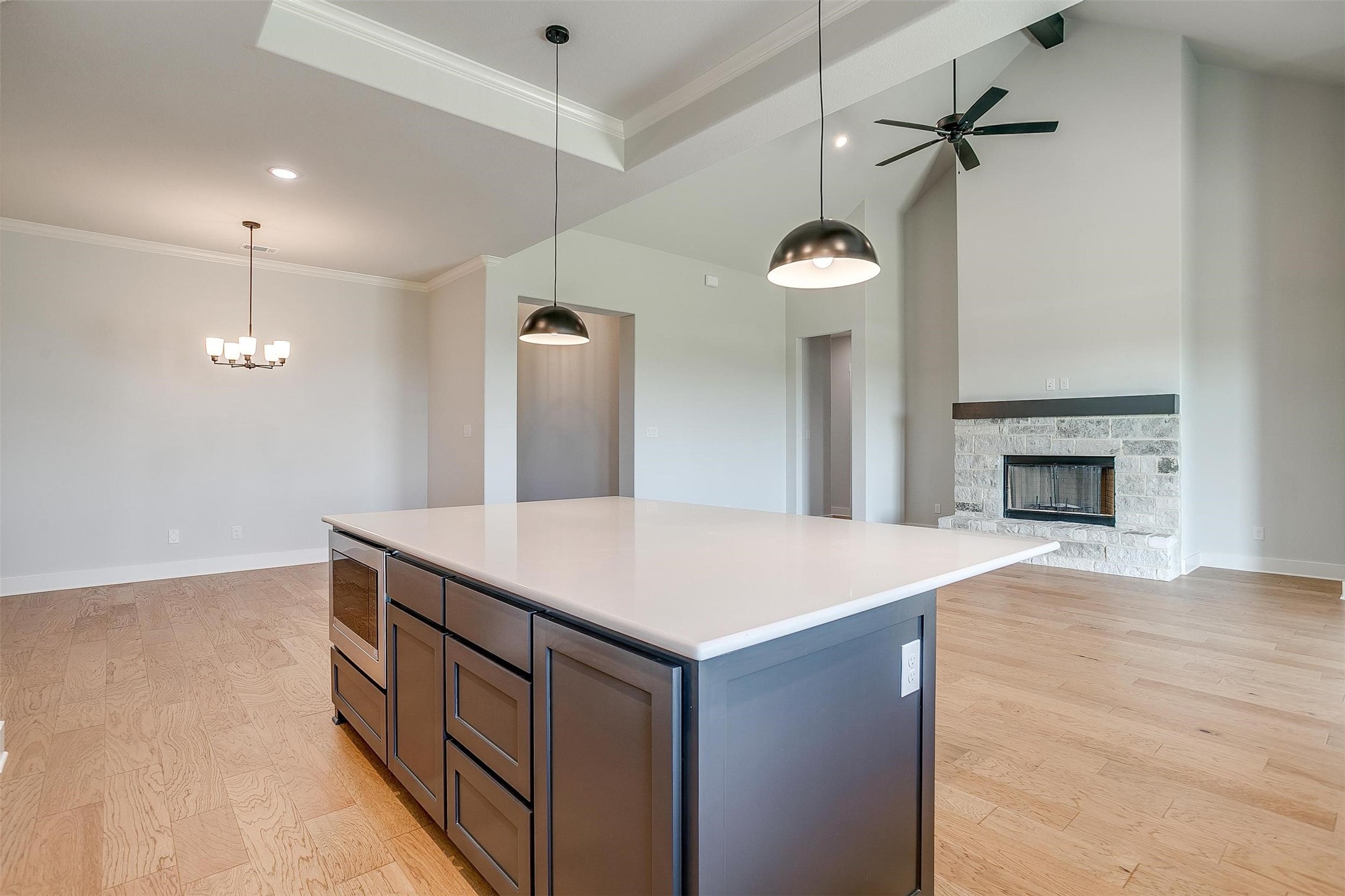 Welcome to Elmwood Home, featuring the Colin floor plan in the Red Oak ISD, just outside city limits. This exquisite residence offers 4 bedrooms and 3 baths, including large master bedroom, and a game room. Luxurious tray ceilings enhance the study, kitchen island, game room, master bedroom, and bath. The gourmet kitchen is equipped with all-electric appliances. A buried 500-gallon propane tank supports a tankless water heater and a gas starter for the wood-burning fireplace. The exterior walls are spray foam insulated for superior efficiency. The family room boasts an 18-foot vaulted ceiling, creating an open and spacious atmosphere. Relax or entertain on the covered back patio. This home perfectly blends luxury, comfort, and modern conveniences.